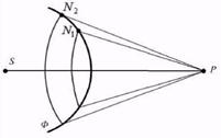 На рисунке представлена схема разбиения волновой поверхности Ф на зоны Френеля. Разность хода между лучами N1Р и N2P равна... +1) Если закрыть n открытых зон Френеля, а открыть только первую, то амплитудное значение вектора напряженности электрического поля... 1) не изменится 2) уменьшится в 2 раза +3) увеличится в 2 раза