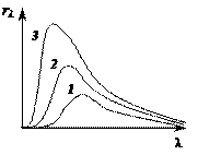 На рисунке представлены графики зависимости спектральной плотности энергетической светимости абсолютно черного тела от длины волны при различных температурах. Наименьшей температуре соответствует график... +1) 1 2) 3 3) 2