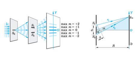 При расчете оптического пути следует учитывать, что при отражении от более плотной среды волна меняет фазу на противоположную, т.е. к оптическому пути следует прибавлять λ/2. Оптической разностью хода Δ называется разность оптических путей двух лучей.