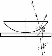 · Кольца Ньютона. Наблюдаются в области соприкосновения плосковыпуклой линзы со стеклянной пластинкой. Когерентные лучи образуются за счет отражения света от верхней и нижней поверхностей зазора между линзой и пластинкой, который может оставаться воздушным или заполняется какой-либо жидкостью. Кольца Ньютона наблюдаются как в отраженном, так и в проходящем свете.