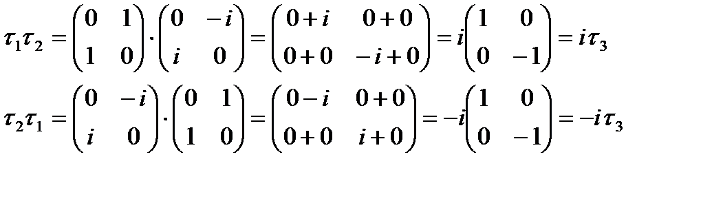 коммутациялық қатынасты қанағаттандырады. Екі элементтің көбейтіндісінен қайта үшінші элемент шығады. Сондықтан ол SU(2) – тобын құрайды. Мұнда
