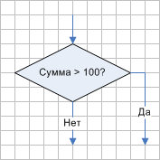 | Элемент, обозначающий выбор следующего действия в зависимости от выполнения условия. Блок «Решение» может иметь несколько входов и ряд альтернативных выходов, один и только один из которых может быть активизирован после проверки условия.