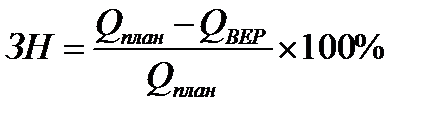 Для подтверждения надежности проекта необходимо, чтобы значение точки безубыточности было меньше значений плановых объемов производства и продаж. Чем дальше от них значение точки безубыточности (в процентном отношении), тем устойчивее проект. Запас надежности проекта рассчитывается по следующим формулам: 1) в случае, если точка безубыточности рассчитана в единицах производимой продукции: