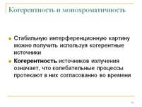 Интерференция света. КОГЕРЕНТНОСТЬ(от лат. cohaerentio – связь, сцепление) – согласованное протекание в пространстве и во времени нескольких колебательных или волновых процессов