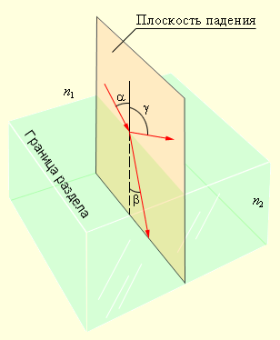 Рис 3.1.1 иллюстрирует законы отражения и преломления света.