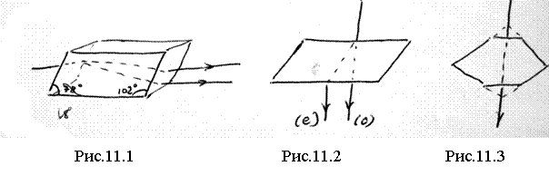 Важный случай Интерференция света - интерференция поляризованных лучей (см. Поляризация света). В общем случае, когда складываются две различно поляризованные когерентные световые волны, происходит векторное сложение их амплитуд, что приводит к эллиптической поляризации. Это явление наблюдается, например, при прохождении линейно поляризованного света через анизотропные среды. Попадая в такую среду, линейно поляризованный луч разделяется на 2 когерентных, поляризованных во взаимно перпендикулярных плоскостях луча. Вследствие различного состояния поляризации скорость их распространения в этой среде различна и между ними возникает разность фаз D, зависящая от расстояния, пройденного в веществе. Призма Николя (сокр. николь) — поляризационное устройство, в основе принципа действия которого лежат эффекты двойного лучепреломления и полного внутреннего отражения. 1.Призма Николя представляет собой две одинаковые треугольные призмы из исландского шпата, склеенные тонким слоем канадского бальзама. Призмы вытачиваются так, чтобы торец был скошен под углом 68° относительно направления проходящего света, а склеиваемые стороны составляли прямой угол с торцами. При этом оптическая ось кристалла (AB) находится под углом 64° с направлением света. 2. Классическим кристаллом, служащим для изучения эффекта является кристалл исландского шпата ( название двойное лучепреломление. Оно заключается в том, что свет, падающий на кристалл, преломляясь, создает не один преломленный луч, как в изотропных средах, а два, идущие в общем случае в различных направлениях и с разными скоростями. Лучи поляризованы в двух взаимно-перпендикулярных плоскостях. Один из лучей (обыкновенный) имеет для всех направлений одно и то же значение показателя преломления, для другого луча (необыкновенного) показатель преломления зависит от направления луча. Для исландского шпата 8. Эллипсоид лучевых скоростей. Двуосные и одноосные кристаллы. Рассмотрим эллипсоид Учтя, что Это – лучевой эллипсоид или эллипсоид Френеля. Главные оси эллипсоида пропорциональны скорости распространения света. Действительно, пусть свет распространяется по оси x а вектор Е направлен по оси y, тогда скорость света пропорциональна ДВУОСНЫЕ КРИСТАЛЛЫ, кристаллы, в к-рых происходит двойное лучепреломление при всех направлениях падающего на них луча света, кроме двух, каждое из к-рых наз. оптической осью кристалла. ОДНООСНЫЕ КРИСТАЛЛЫ, кристаллы, в к-рых происходит двойное лучепреломление при всех направлениях падающего на них луча света, кроме одного, наз. оптической осью кристалла. Двуосный кристалл - кристалл, в котором имеется две оптические оси. Одноосный кристалл - кристалл, в котором имеется лишь одна оптическая ось. Date: 2015-05-18; view: 1786; Нарушение авторских прав |