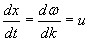 Для свободной частицы Следовательно, групповая скорость волн де Бройля равна скорости частицы. Групповая скорость Скорость движения группы волн, образующих в каждый момент времени локализованный в пространстве волновой пакет, или скорость движения центра волнового пакета: u=dx/dt=dω/dk.. Групповая скорость пригодна для описания переноса энергии(передачи сигнала)посредством несинусоидальных волн, имеющих иной спектр частот,при условии,что спектр не очень широк,а дисперсия волн в среде для этих частот мала.. Связь групповой и фазовой скоростей