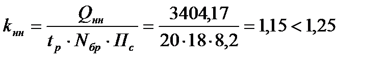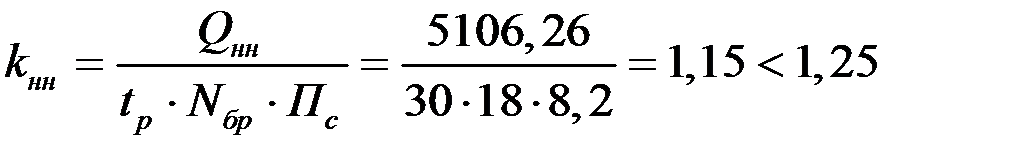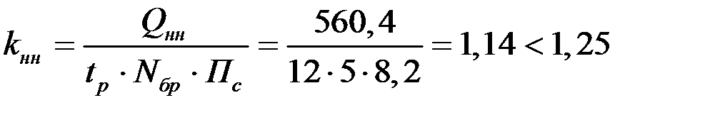 где QНМ – нормативные затраты машинного времени, необходимые для выполнения бригадного комплекса СМР ведущей машиной, маш.-час.; МР – число ведущих машин; КНМ – планируемый коэффициент выполнения норм выработки ведущей машиной; ПС = 8,2 час. – продолжительность рабочей смены, час.; ЧСМ – число рабочих смен в сутки.
