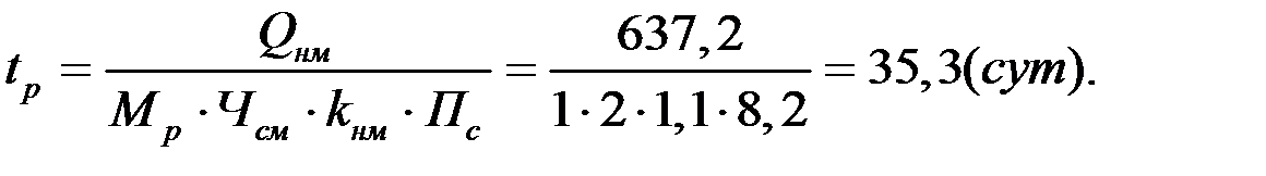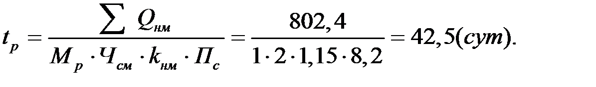 Принимаем продолжительность работы t р = 42 (сут). Вычисляем коэффициент норм выработки: