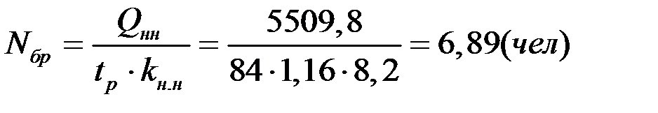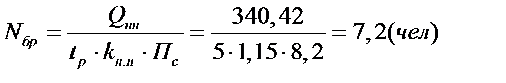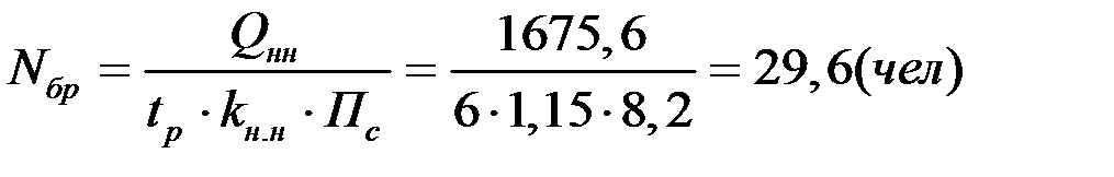 Задаемся Nбр = 11 чел.