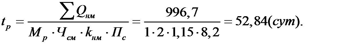 Принимаем продолжительность работы t р = 6 (сут). Вычисляем коэффициент норм выработки: