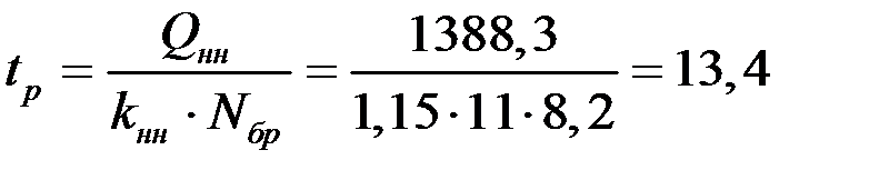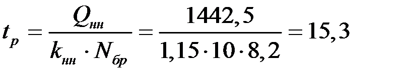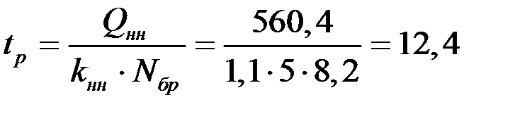 Расчёт с ведущей машиной: Q нм = 637,2 маш./час Вычислим продолжительность работы:
