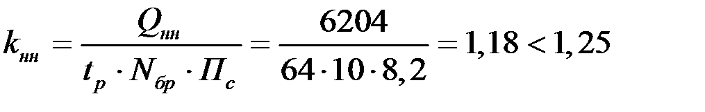 при условии, что NБР – кратно N0 где QН – нормативная трудоемкость бригадного комплекса СМР, чел.- час.; NБР – численный состав бригады, чел.; КНН – планируемый коэффициент выполнения норм выработки рабочими в бригадах идентичного профиля; N0 – численность технологического (для специализированных бригад) или структурного (для комплексных бригад) звена, чел.