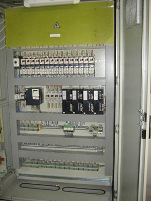 Шкафы управления технологическим оборудованием предназначены для управления электродвигателями и электрифицированными задвижками. Электродвигатели могут управляться с помощью пускателей прямого пуска и реверсивных, устройств плавного пуска и преобразователей частоты. В качестве устройств защиты, коммутации и управления применяется оборудованиеSchneiderElectric, Siemens, GeneralElectric. Защита двигателей осуществляется с помощью автоматов защиты двигателей, тепловых расцепителей, контроллеров двигателей, а так же встроенной в устройства плавного пуска и преобразователи частоты защитой. Типовая схема управления электродвигателем, реализованная в шкафу управления, предусматривает 2 режима управления: местный (от пульта местного управления без участия ПЛК) и дистанционный (от ПЛК). Информация о состоянии электродвигателя доступна для ПЛК в обоих режимах. При необходимости, реализуется возможность отключения электродвигателя по команде ПЛК даже в местном режиме (например, насос в местном режиме перекачивает жидкость в емкость, уровень в которой контролирует ПЛК и при заполнении емкости отключит насос). Управление задвижками осуществляется от реверсивных пускателей, твердотельных реле, либо от ПБР (пускатель бесконтактный реверсивный). Защита осуществляется с помощью автоматов защиты двигателей и тепловых расцепителей. Типовая схема управления задвижкой, реализованная в шкафу управления, предусматривает 2 режима управления: местный (от пульта местного управления без участия ПЛК) и дистанционный (от ПЛК). Информация о состоянии задвижки доступна для ПЛК в обоих режимах. Схема управления отключает привод задвижки либо по концевому выключателю открытого и закрытого положения, либо по концевому выключателю моментной муфты задвижки (закрытие с дотяжкой). Для регулируемых задвижек применяются схемы с обратной связью от позиционера задвижки и либо импульсное управление, либо управление аналоговым сигналом с отдельной подачей силового электропитания на задвижку. Подобным образом реализуется управление задвижками с пневматическим приводом.