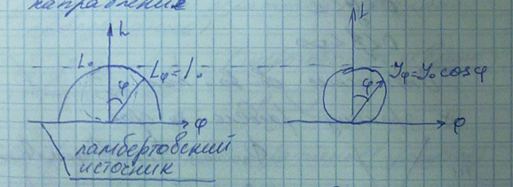 λ E=hν=eU E=4,3 2. Фотометрические свойства тел. Типы отражения и пропускания. Ламбертовские источники и поверхности. Закон Ламберта Если яркость поверхностного источника излучения одинакова во всех направлениях, то для такого источника выполняется закон Ламберта, согласно которому сила излучения такого источника определяется по формуле: