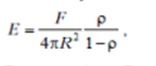Классическая схема фотометра Ульбрихта показана на рис. 2.3.6, из которого ясен и принцип действия. На внутренней поверхности сферической полости радиуса R нане- сено диффузно отражающее покрытие с коэффициентом отражения ρ, близким к единице. Каждая точка поверхности шара освещена первич- ным потоком от источника света S и вторичным, многократно переот- раженным. Расчет показывает, что вторичная освещенность Е одинакова для всех точек сферы, не зависит от места расположения ис- точника и его диаграммы направленности, линейно зависит от светово- го потока F, излучаемого источником и равна: