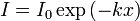 где I, I0 — интенсивности излучения в данной точке и в точке x = 0; k — коэффициент поглощения; x — координата вдоль направления распространения.