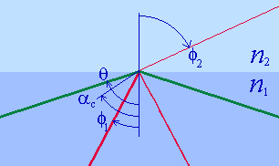 10. ПВО и его применение (рефрактометр Аббе, оптическое волокно, световоды.) Полное внутреннее отражение — внутреннее отражение, при условии, что угол падения превосходит некоторый критический угол. При этом падающая волна отражается полностью, и значение коэффициента отражения превосходит его самые большие значения для полированных поверхностей. Коэффициент отражения при полном внутреннем отражении не зависит от длины волны.