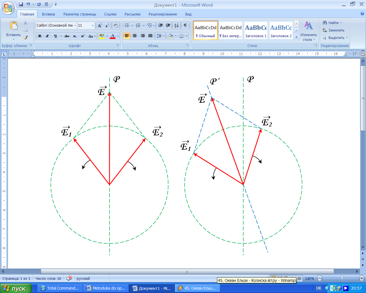 Рисунок 2 – Найбільш просте модельне пояснення явища обертання площини поляризації.