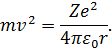 Оскільки припускали, що електрон обертається навколо ядра по коловій орбіті, то кулонівська сила притягання є доцентровою, і для неї можна записати: