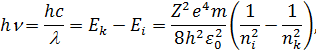 Перемноживши відповідно ліві і праві частини рівностей (13) і (15), отримаємо значення енергії електрона, який обертається навколо ядра з зарядом