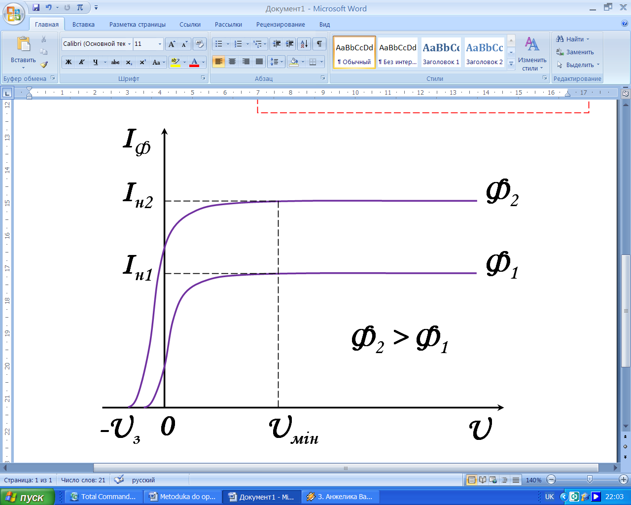 Рисунок 5 – Залежність фотоструму від прикладеної напруги.
