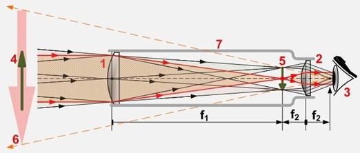 20.4. Телескоп-рефлектор Рефлектор — оптический телескоп, использующий в качестве светособирающего элемента зеркало. Оптический телескоп — это система, состоящая из объектива и окуляра. Задняя фокальная плоскость первого совмещена с передней фокальной плоскостью второго.