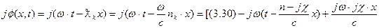 Рассмотрим распостранение плоской монохроматичной волны в среде, которая имеет комплексный показатель преломления (3.20). Уравнение такой волны: