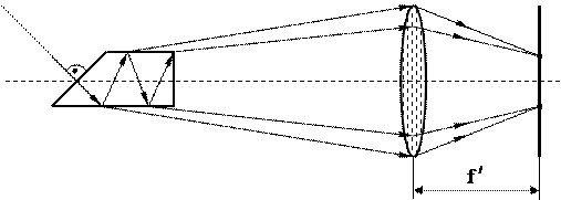 Такой интерферометр состоит из плоскопараллельной стеклянной или кварцевой пластинки, толщиной 3-10 мм и длиной 10-30 см. Для уменьшения потерь на отражение, входная грань расположена перпендикулярно к падающему лучу. Внутри пластины луч падает на поверхности под углом близким к углу полного внутреннего отражения. Поэтому, внутри пластины он испытывает многократное отражение, а из пластины выходят параллельные лучи, которые образуют в фокальной плоскости линзы две интерференционные картины.