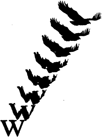 По мере того как фонарь тускнеет, число фотонов, рассеивающих электроны, уменьшается, так что некоторым электронам удается полностью избежать быть «видимыми» посредством света. Те электроны, которые видимы, появляются позади щели 1 или щели 2, именно там, где бы мы ожидали их найти. Каждый из не увиденных электронов разделяется и интерферирует сам с собой, образуя на экране интерференционную картину, когда его достигнет достаточное число электронов. В предельном случае яркого света видна только корпускулярная природа электронов; в предельном случае отсутствия света видна только волновая природа. В промежуточных случаях тусклого света в аналогичной промежуточной степени видны оба аспекта: то есть здесь мы видим электроны (хотя никогда один и тот же электрон) как одновременно и волны, и частицы. Таким образом, волновая природа волночастицы не является свойством всей совокупности, но должна оставаться в силе для каждой индивидуальной волночастицы, когда мы на нее не смотрим. Это должно означать, что волновой аспект единичного квантового объекта трансцендентен, поскольку мы никогда не видим его проявленным. Происходящее помогает объяснить ряд картинок (рис. 19). На картинке внизу слева мы видим только букву W; это соответствует использованию яркого фонаря, который показывает только корпускулярную природу электронов. Затем, двигаясь вверх от картинки к картинке, мы начинаем видеть орла — точно так же, как при уменьшении яркости света некоторые электроны избегают наблюдения (и локализации), и мы начинаем видеть их волновую природу. Наконец, на последней, верхней правой картинке, можно разглядеть только орла; фонарь выключен, и теперь все электроны представляют собой волны.
