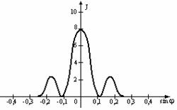 12. Имеются 4 решетки с различными постоянными d, освещаемые одним и тем же монохроматическим излучением различной интенсивности. Какой рисунок иллюстрирует положение главных максимумов, создаваемых дифракционной решеткой с наименьшей постоянной решетки? (J – интенсивность света, j - угол дифракции. b)