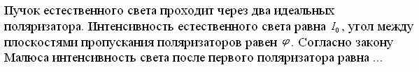 22. На пути естественного света интенсивностью Jo помещены две пластинки турмалина. После прохождения пластинки 1 свет полностью поляризован. Если интенсивность J2 света, прошедшего через обе пластинки, связана с Jo соотношением J2 = Jo /8, то угол φ между направлениями ОО и О'О' равен...