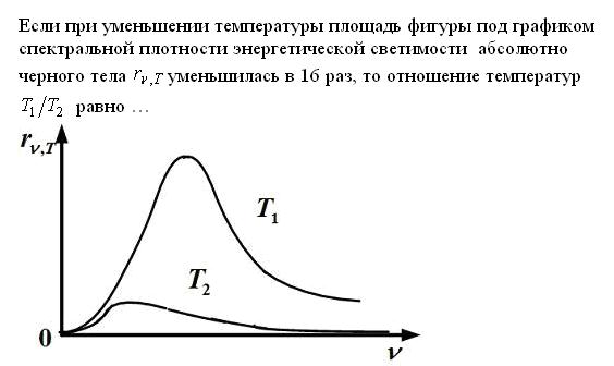 33. На рисунке показаны кривые зависимости спектральной плотности энергетической светимости абсолютно черного тела от длины волны при разных температурах. Если длина волны, соответствующая максимуму излучения, уменьшилась в 4 раза, то температура абсолютно черного тела...