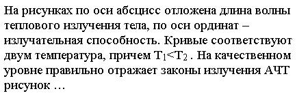 35. На рисунке показана кривая зависимости спектральной плотности энергетической светимости абсолютно черного тела от длины волны при Т=6000К. Если температуру тела уменьшить в 2 раза, то энергетическая светимость абсолютно черного тела уменьшится...