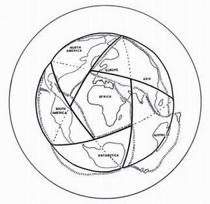 Те же геометрические паттерны появляются в структуре и форме континентов и горных хребтов на Земле. Все вместе они называются “Глобальной Решеткой”. Глобальная Решетка впервые (по крайней мере, в современные времена) была открыта Айвеном Т. Сандерсоном. Интересно, что Сандерсон никогда не смотрел на структуру континентов, он исследовал нечто, намного более космическое. Он искал вихревые точки. Он хотел найти места на Земле, где корабли и самолеты буквально растворялись в воздухе, такие как Бермудский Треугольник. Сандерсон изучил все известные авиационные сообщения и многие морские сообщения, которые только смог найти. Удивительно, но все исчезновения концентрировались вокруг десяти равноудаленных точек на поверхности Земли. Как только он прибавил северный и южный полюса, он получил 12 точек. Соедините точки, и вы получите геометрию икосаэдра:
