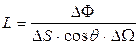 ΔS0 = ΔS cos θ, равную площади проекции излучающей площадки на плоскость, перпендикулярную к направлению наблюдения. Яркостью L называют отношение светового потока ΔФ с поверхности ΔS в заданном направлении θ внутри телесного угла ΔΩ к произведению площади видимой поверхности ΔS0 на телесный угол ΔΩ: