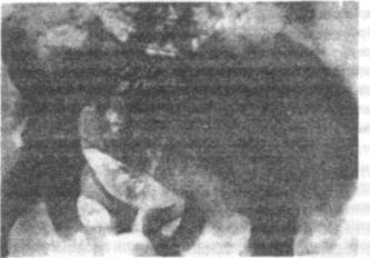 Рис. 11. Рентгеновский снимок 1962 года, показывающий степень разложения кости Витторио Микелли в результате злокачественной саркомы. Как показывает снимок, костной ткани осталось так мало, что верхний сустав буквально плавает в мягкой ткани.
