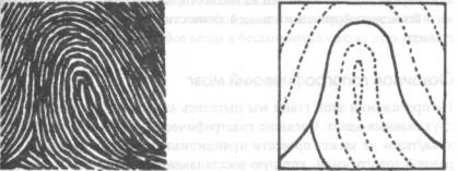 Рис. 14. Неврологи обнаружили, что у пациентов, страдающих болезнью Альцгеймера, большая вероятность того, что отпечатки пальцев (паттерн) имеют специфический характер, так называемые локтевую петлю. По крайней мере десять других генетических отклонений также отражаются на специфических паттернах руки. Тем самым подтверждаются следующие из голографической модели выводы, согласно которым каждая часть тела содержит информацию о целом организме. (Заимствовано из журнала Medicine.)