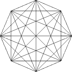 Эта октада выражает, главным образом, идею единства за внешней видимостью многообразия /wahdat-es-chuhud/ и в то же время - эссенциальное тождество в разнообразии форм /wahdat-al-wudjud/. Символ двойного квадрата, развитый сообразно принципу Систематики, представляет, как кажется, особую ценность для репрезентации организованных структур и исторических процессов, образующих шкалу диапазонов от единственности и тотальности, Форма, которую мы приняли, образуется соединением всех точек правильного восьмиугольника: