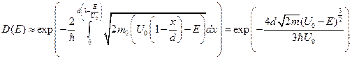 Подставив вид потенциальной энергии и пределы интегрирования в нашем случае в выражение (1), найдём коэффициент прохождения частицы через потенциальный барьер в зависимости от энергии частицы: