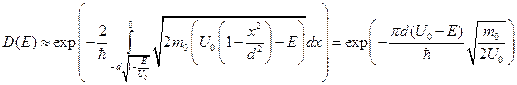 Рисунок 1 Коэффициент прохождения частицы через потенциальный барьер определяется выражением: