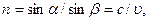 де α – кут падіння; β – кут заломлення; с – швидкість світла у вакуумі; υ – швидкість світла в даному середовищі. Оскільки швидкість світла в повітрі близька до швидкості його у вакуумі, то показник заломлення середовища, виміряний відносно повітря, практично дорівнюватиме абсолютному показникові заломлення цього середовища. Для повітря при тиску 1010,8 гПа і температурі 293 K n = 1,000274. Оскільки п залежить від частоти (довжини хвилі) падаючого світла, то його прийнято нормувати до лінії натрію D і записувати nD. Часто індекс D опускають, маючи на увазі згадану вище умову.