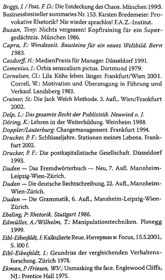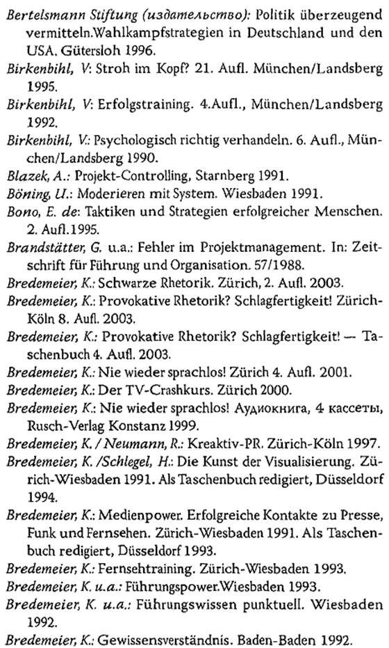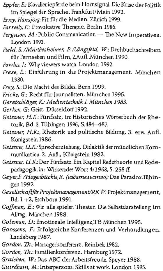 Возможные ответы к заданиям на стр. 70: 119. а) Профессионалы бизнеса новой волны: молоды, динамичны и неуспешны. б) «Правильно, потому что я — единственный, кто за свое в) «Верно, они буквально носят меня на руках, потому что г) «Настроение у вас как у бутылки слишком долго стоявшего молока, а именно — кислое!» е) «Ну если только вы не предпочитаете выдохшееся!» ж) Замечание во время вашего доклада: «Еще есть вопросы, з) «Бы вообще знаете, что такое "информационный автобан"?» «Да, но я вам не скажу!» «Да, это так теперь называется тупик!» и) «Я не понимаю!» — «Sorry, я бы мог помочь, если бы вы не расслышали!» й) «Вы же носите контактные линзы!» «Верно, дома в футляре они мне ни к чему!» «Понятное дело, благодаря этому хотя бы я вижу перспективу». «Верно, одна линза, к сожалению, не гарантирует необходимого обзора!» «Это лучше, чем гордиться наступающей близорукостью!» к) «Вы получаете высокую зарплату — сейчас самое время ее заработать!» л) «Мои комплименты, господин Майер, вы сделали свое домашнее задание!» — «Вы правы, вот, можете списать!» Или: «Правильно, чье же еще домашнее задание мне делать?» м) «Вы меня утомляете!» — «Не расстраивайтесь, вы вполне сносны и в таком состоянии!» н) «Такого ухода (из компании) никто не заслужил!» — «Заслужил — нет, а вот получил — да». о) «Мы все в одной лодке...» — «...которую вы хотите переделать в галеру с рабами!» п) «Многие женщины с удовольствием согласились бы провести со мной ночь!» «Да, примерно половина из тех, кому за 90!» или: «Да, конечно, все инвалиды с удовольствием вспоминают о войне!» или: «И сэкономят упаковку снотворного!» р) «В своем брючном костюме, госпожа Майер, вы выглядите почти как мужчина!» — «Этот комплимент я могу вернуть: вы в своем выглядите тоже как мужчина, почти!» с) «Нам не нужно каждый раз изобретать велосипед!» — «Нет, но неплохо бы, наконец, на нем куда-нибудь поехать!»