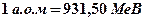 де І – спінове ядерне квантове число (або спін ядра), яке набуває цілі або напівцілі значення: 0, 1/2, 1, 3/2,… Ядра з парним значенням А мають цілий спін, ядра з непарним – напівцілий спін. Масу атомів і ядер в ядерній фізиці виражають в атомних одиницях маси (а.о.м.). За атомну одиницю маси приймається 1/12 частина маси атома вуглецю