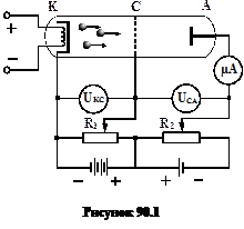 Якщо енергія електрона, що налітає на атом, недостатня щоб його іонізувати, то можливі лише пружні зіткнення, при яких електрон практично не втрачає енергії. При збільшенні різниці потенціалів між катодом і сіткою (потенціометром R1) енергія електрона збільшується і стає достатньою для збудження атомів. Електрони прискорюються, зростає швидкість і, відповідно, енергія їх зростає. На певній відстані від катода електрон вже має достатню енергію для збудження атомів ртуті. Відбувається непружне зіткнення з атомом ртуті. Атом поглинає енергію, електрон атома переходить на вищий енергетичний рівень, а вільний електрон втрачає свою енергію і зменшує швидкість до нуля. Якщо це зіткнення відбувається біля сітки, то електрон попадає в область між сіткою і анодом з нульовою швидкістю і затримується гальмівним потенціалом U са приблизно в 0,5 В, який створюється потенціометром сітка-анод. Слід відмітити, що газ в лампі розріджений, тому електрон може зустріти на своєму шляху до сітки один атом. Кількість електронів, які долітають до анода за 1 секунду визначають величину струму, який вимірюється міліамперметром. При подальшому збільшенні напруги між катодом і сіткою, електрон може досягти енергії збудження атома приблизно посередині цього простору і при непружному зіткненні з атомом ртуті втратити всю енергію. При подальшому русі він знову прискорюється і, якщо біля сітки він набере достатньої енергії для збудження, то він втратить її вдруге і знову не зможе досягти анода. Це буде другий потенціал збудження. Побудуємо вольтамперну характеристику цієї лампи, тобто залежність анодного струму від напруги між катодом і сіткою. При збільшенні напруги від 0 до першого потенціалу збудження струм в лампі зростає за законом трьох других (як у вакуумі). При досягненні напруги потенціалу збудження U зб частина електронів не досягають анода і струм зменшується. У вольтамперній характеристиці з’являється «провал струму». При подальшому зростанні напруги між катодом і сіткою відбудеться повторне зростання струму і при досягненні подвійної напруги збудження струм знову почне спадати. Необхідно врахувати, що вклад в подолання затримуючого поля вносить лише поздовжня складова швидкості електрона, а не повна швидкість, яка міняється при пружних зіткненнях. Це приводить до згладжування залежності I (U) і деякому зміщенню максимумів на кривій у бік менших енергій.