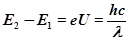 де Е 1 – енергія на першому рівні, Е 2 – енергія на другому рівні. Досліди Д. Франка і Г. Герца експериментально підтвердили другий постулат Бора, тобто енергія може передаватись атому тільки дискретними порціями (квантами). Ця порція енергії не може бути менше hv і більше hv, а точно приймає значення hv. Перехід електронів з основного енергетичного рівня на наступний переводить атом у збуджений стан. Через короткий час (10-8с) атом повертається в основний стан. Електрон переходить на основний енергетичний рівень. При цьому випромінюється квант світла. Потенціал збудження – це напруга, яка необхідна, щоб надати електрону енергію для переходу з основного рівня на перший збуджений рівень.