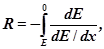 Метод вимірювання Якщо досліджувати монохроматичний потік α–частинок і підраховувати число частинок, збільшуючи поступово відстань між джерелом і детектором, тобто заставляючи альфа-частинки проходити все більший шар повітря, то число N частинок в пучку починає на певній відстані падати не відразу до нуля, а з деяким нахилом (крива 1 на рис.92.1): Якщо цю криву продиференціювати і побудувати величину dN/dx залежно від товщини шару x, то вийде крива 2 (рис. 92.1) з різким максимумом при x = R0, що показує, що переважна більшість α–частинок має певний пробіг з деяким відхиленням в ту і іншу сторону. У діапазоні енергій 4 < Eα < 15 МеВ використовують для оцінки Eα залежність:
