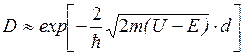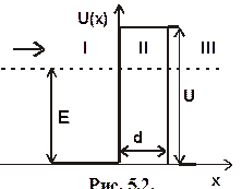де m − маса частинки, l − ширина потенціалної ями, п = 1,2,3,… · n= де λ1, λ2 − довжини хвиль де Бройля в областях І та ІІ (частинка рухається із області І у область ІІ), · Коефіцієнт відбивання ρ та коефіцієнт пропускання τ хвиль де Бройля через низький (U<E) потенціальний бар’єр нескінченої ширини:
