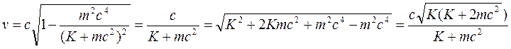 Так как р.с = (К м.(К м + 2 m e c2)1/2 (смотри ниже Приложение) то
