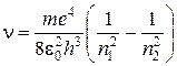 где e - заряд электроне. Тогда частоты спектральных линии атома водорода при переходе с орбиты с энергией Еn2 на орбиту с энергией: En1 будут следующие: